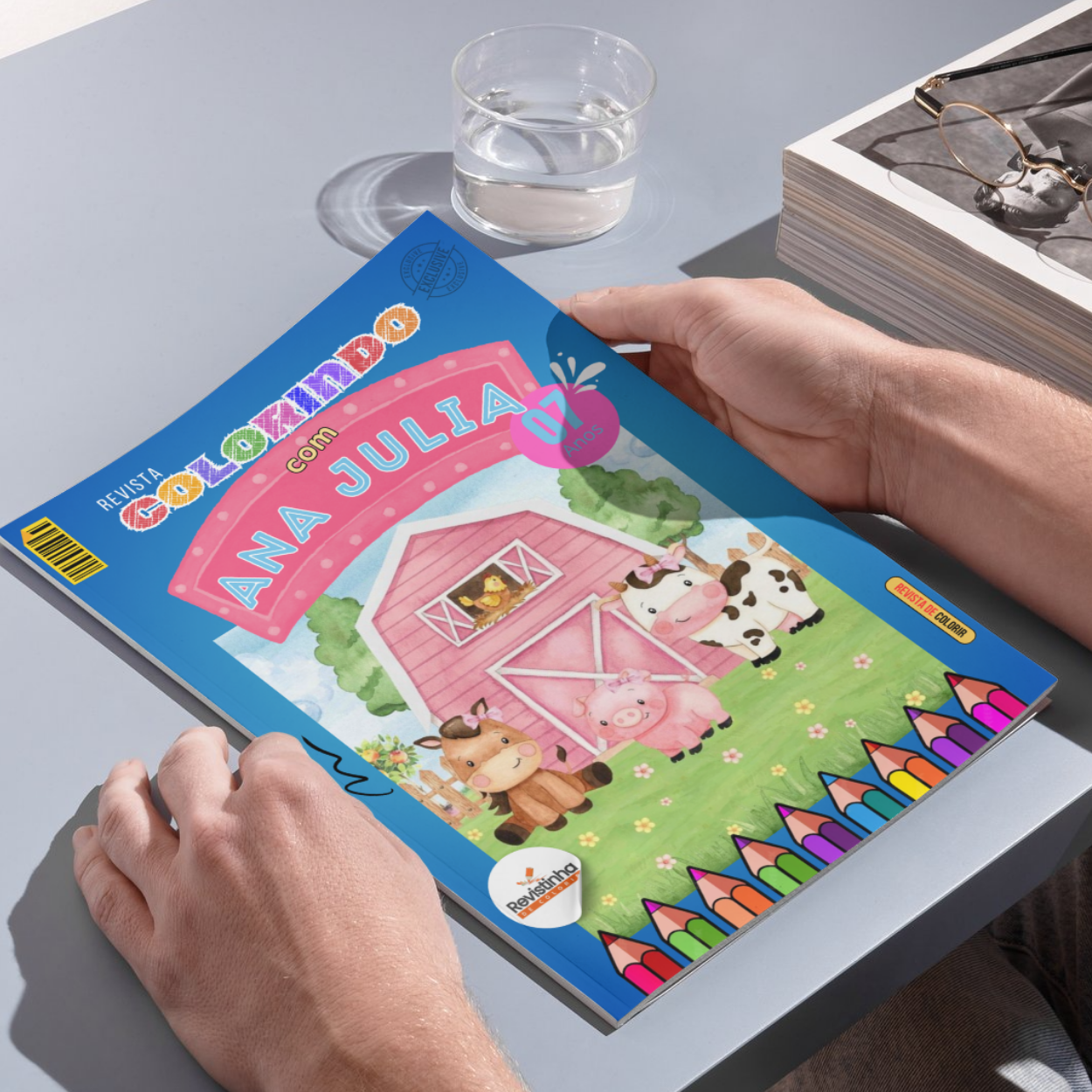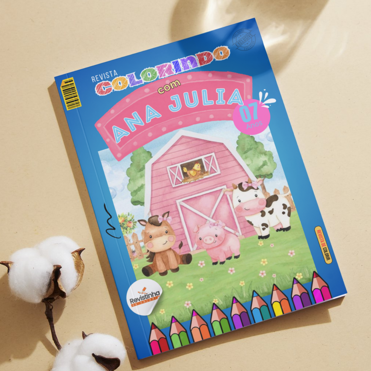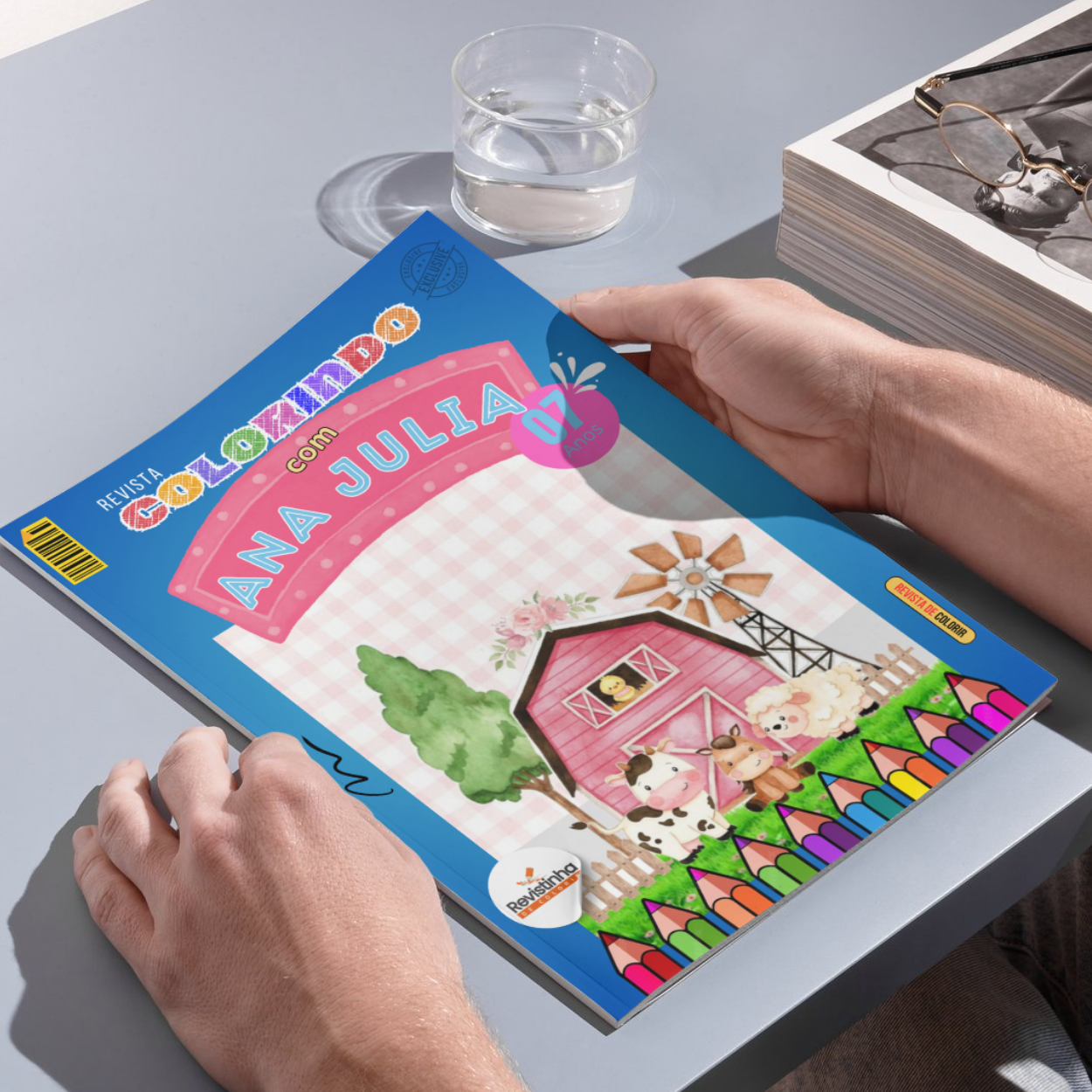 • Revistinha de colorir com o tema Fazendinha Rosa